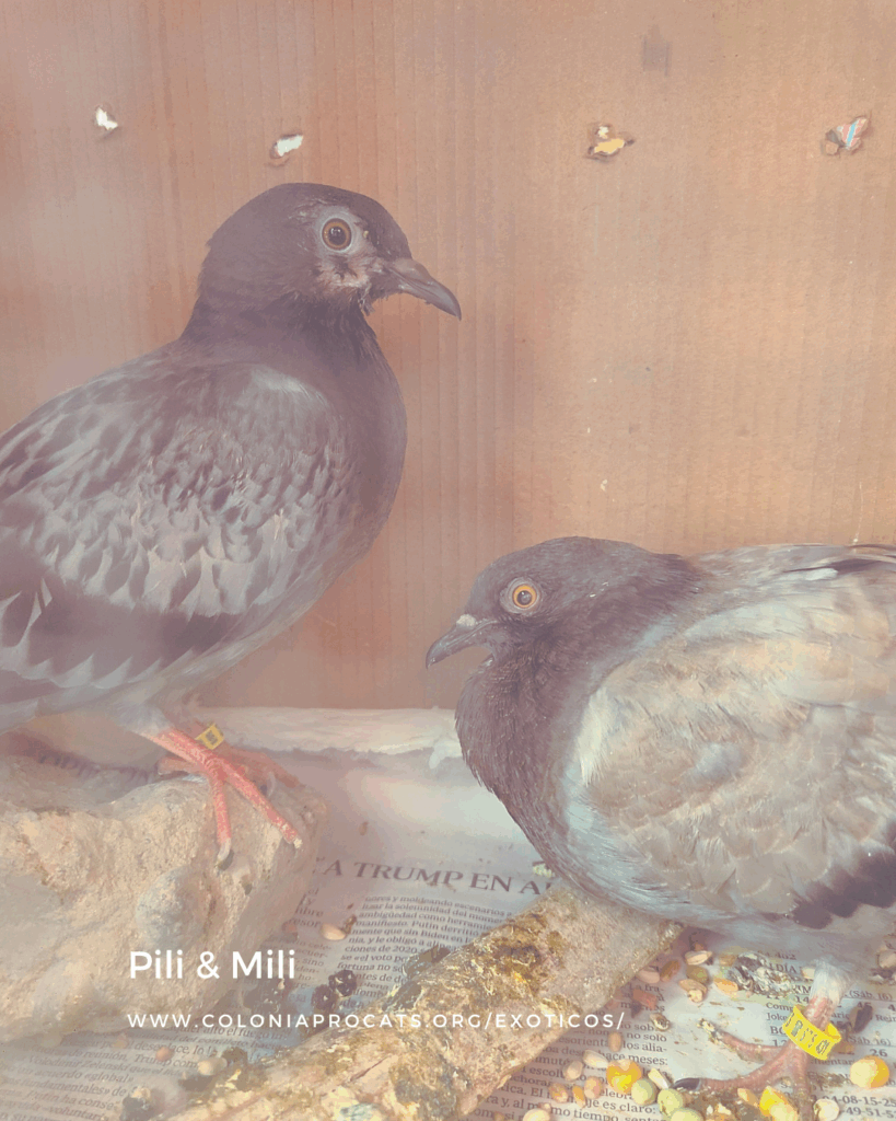 Se encuentra en acogida indefinida en un espacio habilitado para él, donde suele vivir independiente y no ha hecho pareja con las demás palomas. Necesita pa/madrina, valoraríamos una adopción si fuera especial y muy consciente de su carácter y necesidades de salud. Desparasitado, vacunado y anillado.